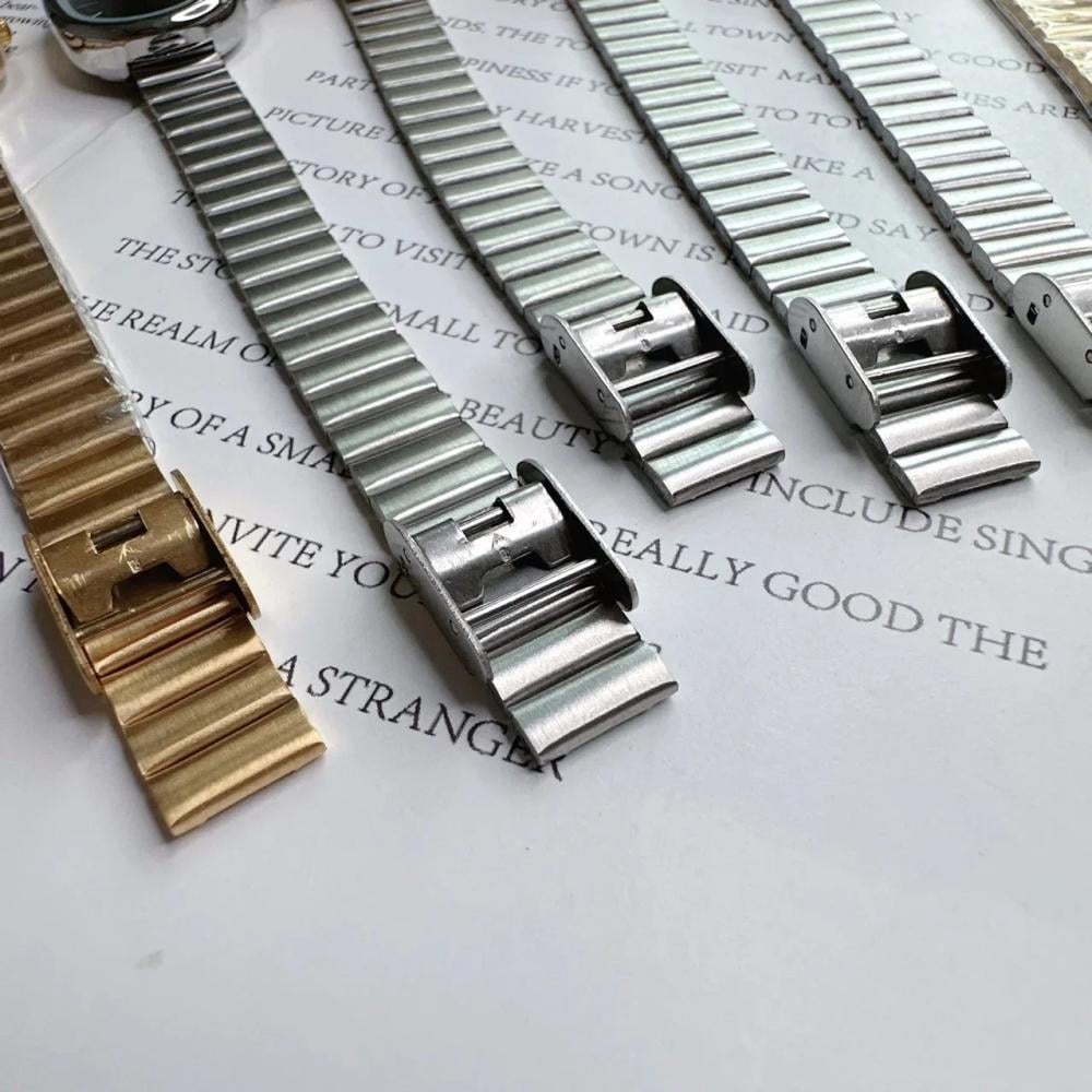 - سوار من الفولاذ المقاوم للصدأ يمنحها لمسة فاخرة.