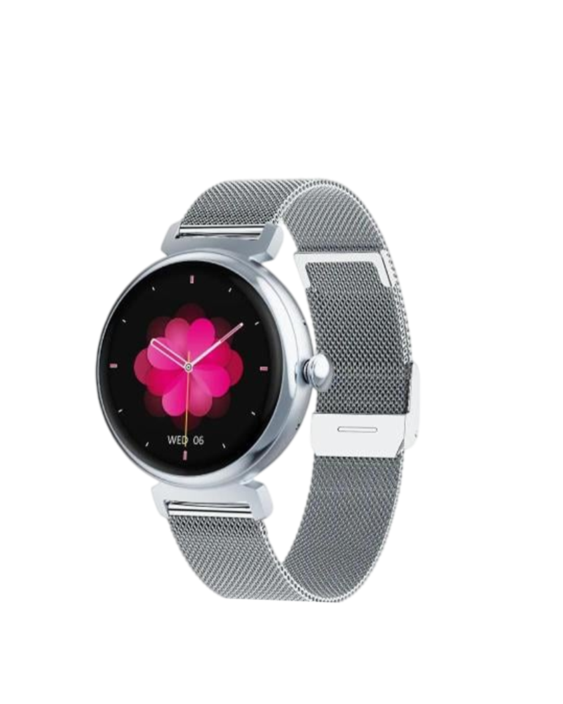 شاشة AMOLED مقاس 1.04 بوصة، شاشة ساعة ذكية للسيدات، تعرض دائمًا، مكالمة بلوتوث، ساعة ذكية، جسم معدني، ساعة شاشة صغيرة